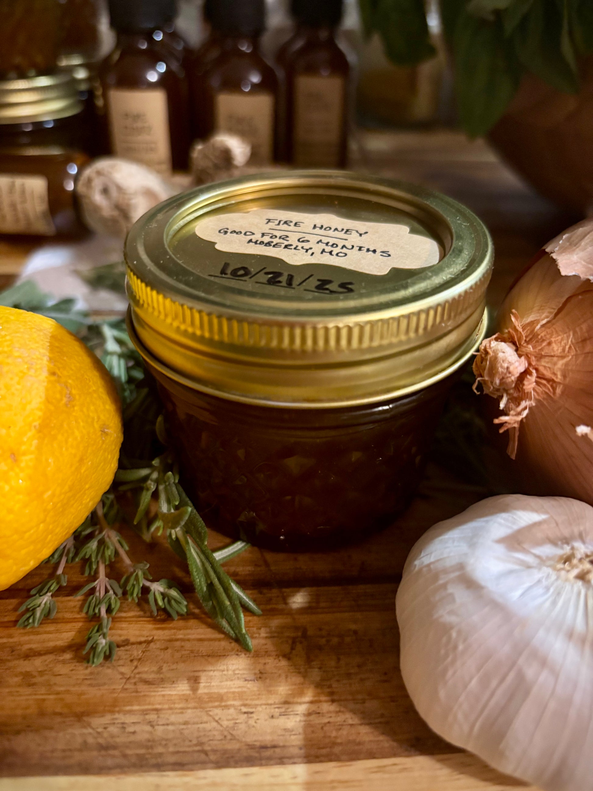 Cinnamon, orange, clove forward flavors with turmeric, ginger, garlic, onion and black pepper tucked in for their benefits. This local raw honey was infused for four weeks for maximum immune benefits and is what I give my kiddos whenever they have even a whisper of a cold. It has cut our sick time in half!
